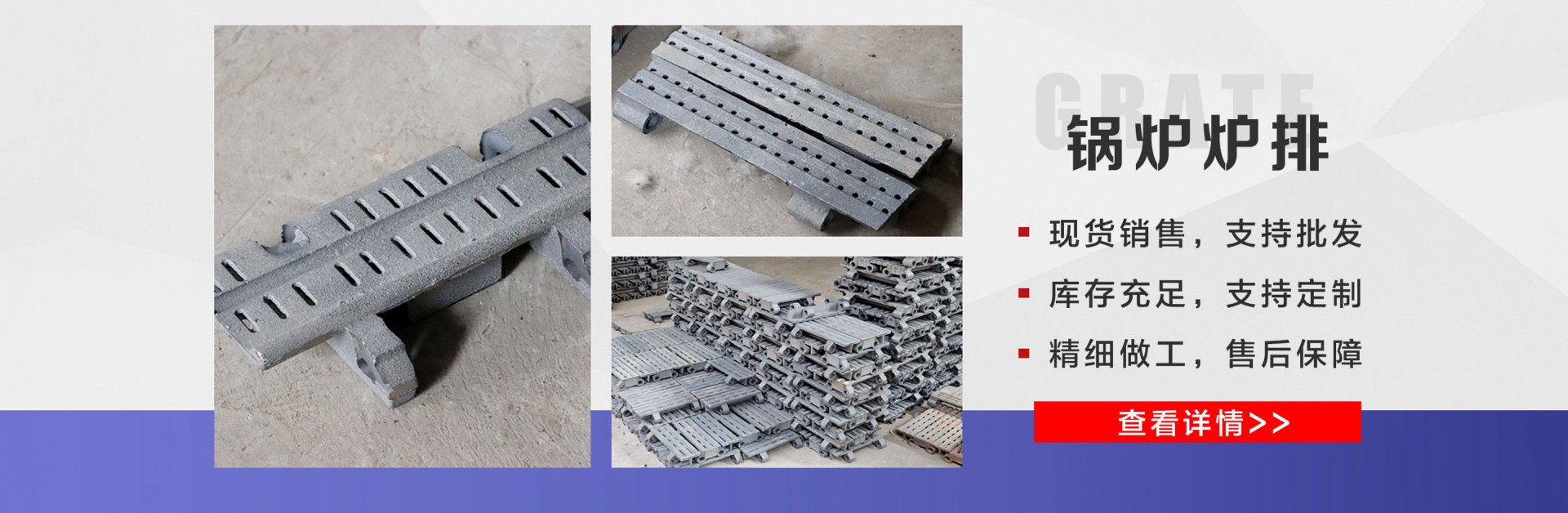 麗新機(jī)械配件廠位于“江北水城”之稱的聊城。公司主要銷售:鍋爐爐門,爐篦子,爐排片,鍋爐爐排,省煤器管,鍋爐風(fēng)帽,鍋爐配件等多種產(chǎn)品,公司堅(jiān)持以市場(chǎng)為導(dǎo)向、以誠(chéng)實(shí)守信為經(jīng)營(yíng)理念,竭誠(chéng)為廣大客戶服務(wù)!  爐排是鍋爐或工業(yè)爐中堆置固體燃料并使之有效燃燒的部件。整個(gè)爐排主要包括框架和爐排片兩個(gè)部分。爐排片通常用鑄鐵制造,組裝后片與片之間保持必要的通風(fēng)縫隙,并且往往還在爐排下邊設(shè)置可以調(diào)節(jié)風(fēng)量的分隔的通風(fēng)室,以便空氣通過(guò)縫隙進(jìn)入燃料層燃燒。燒盡后的灰渣用人工或機(jī)械方法排出。爐排有固定式、移動(dòng)式、往復(fù)式、振動(dòng)式和下飼式等類型。  鍋爐爐排操作實(shí)現(xiàn)了機(jī)械化,減輕了司爐工的勞動(dòng)強(qiáng)度。快裝出廠,到使用現(xiàn)場(chǎng)后,裝接閥門儀表,鼓、引風(fēng)機(jī)、煙風(fēng)管道、省煤器、除塵器、出渣機(jī)。上煤機(jī)及水電路等即可運(yùn)行,且具有起動(dòng)生火快等特點(diǎn)。  公司憑借豐富的規(guī)格品種,過(guò)硬的質(zhì)量,合理的價(jià)格,完善的服務(wù),不斷地受到新老用戶及業(yè)內(nèi)人士的肯定和信任,我們本著及用戶之所及,想用戶之所想的服務(wù)宗旨不斷地拼搏,進(jìn)取,在此對(duì)多年來(lái)支持我們的各行各業(yè)的新老朋友表示由衷的感謝!  我公司的理念:“誠(chéng)信、合作、互利、雙贏”!以最大的努力滿足客戶的需求。...